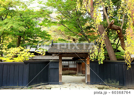 秋田県 仙北市 角館のしだれ桜 樺細工伝承館の門
