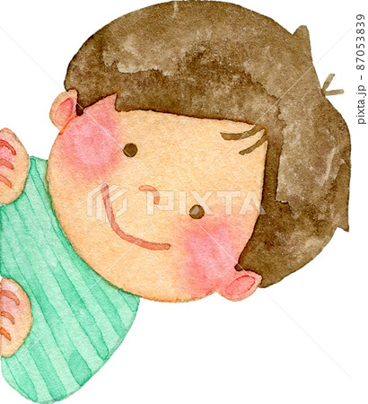 ひょっこりと顔を出す男の子のイラスト(緑色)