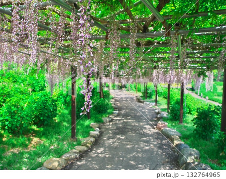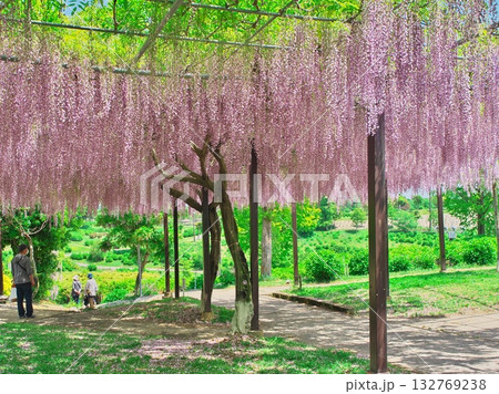 津市 かざはやの里 満開の藤の下の遊歩道