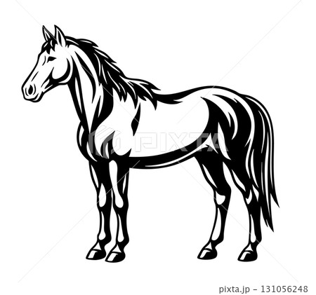 馬の横顔のアップの黒いシルエットのベクターイラスト素材