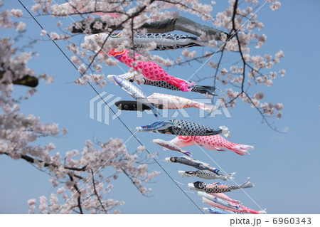 北上市展勝地さくらまつり 桜と水仙と鯉のぼり
