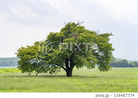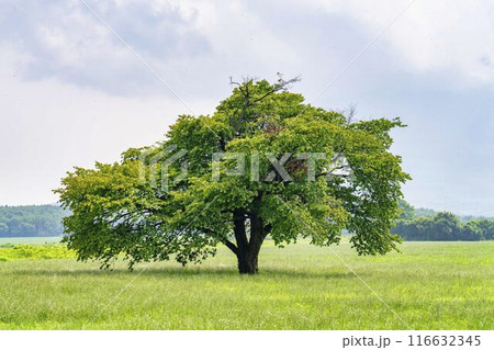 夏の青上坊牧野の一本桜 岩手県八幡平市