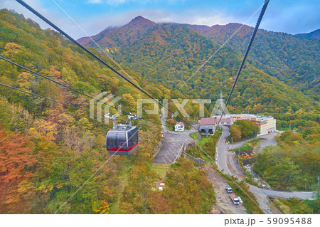秋の群馬県みなかみの谷川岳ロープウェイと白毛門