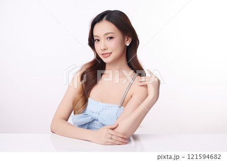 Beautiful young asian woman with clean fresh skin on white background, Face care, Facial treatment, Cosmetology, beauty and spa, Asian women portrait.