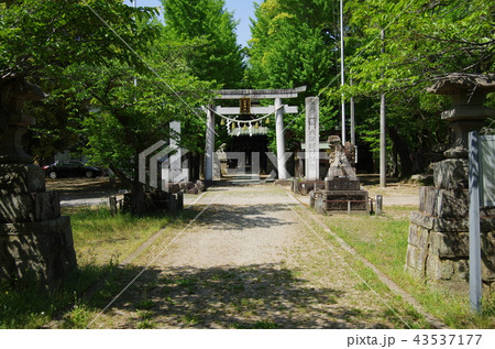新緑に包まれる関東三雷神社の一つ金村別雷神社の鳥居と扁額