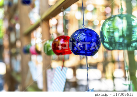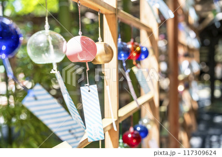 夏の熊野神社(熊野大社)の風景 風鈴の飾り「かなで」 山形県南陽市