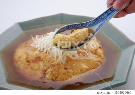 餡かけ中華風オムライス、天津飯を白背景で撮影