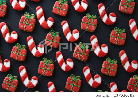 Christmas handmade gingerbread cookies covered with multi-colored icing.