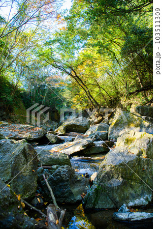 紅葉した渓谷