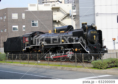 昭和19年製造昭和50年まで走り続けたD511072蒸気機関車 右側から望む 車両を下側半分に