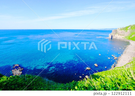 神威岬の積丹ブルーの海/北海道 積丹町