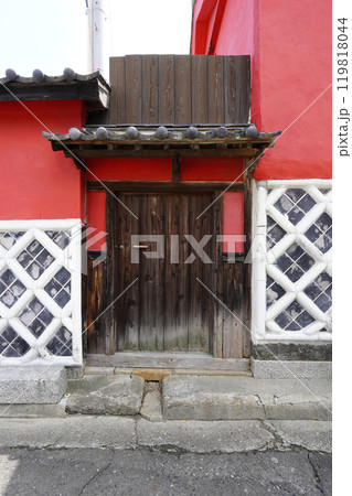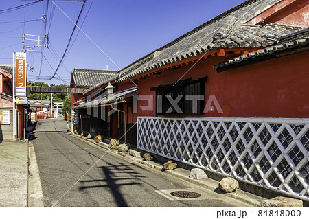 引田の古い町並み かめびし屋の赤い壁(香川県東かがわ市)