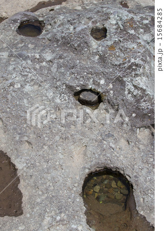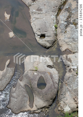 清流の流れに円形に浸食された岩畳 甌穴 a-2 フィルム調