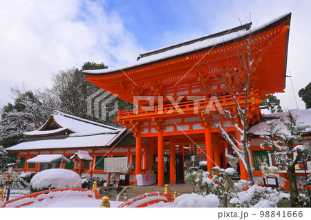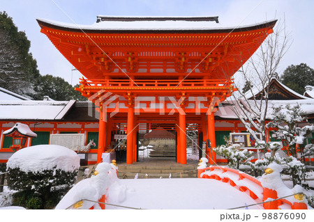 京都市世界遺産 上賀茂神社楼門の冬景色