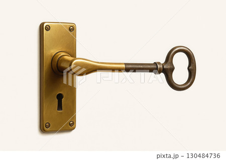 Close-Up of Modern Door Knob with Key Inserted, Soft Focus on Key and Door, Contemporary Interior Design Element, Home Security Concept