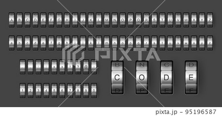 Combination code lock font, padlock type and typeface, vector alphabet letters. Safe box combination code lock font of chrome steel dials, ABC type with metal padlock digit numbers and symbols