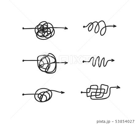 Confused process concept insane messy line vector illustration