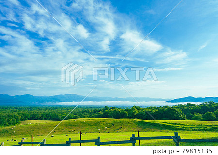 軽井沢 浅間山近郊 自然 快晴の青空風景素材