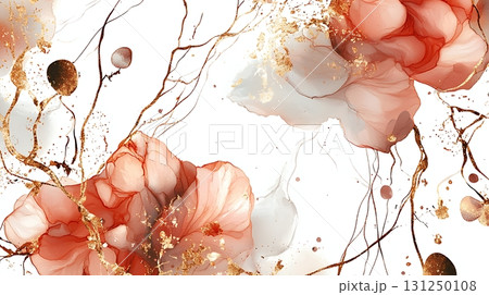 Elegant Abstract Floral Design with Soft Hues and Golden Accents on White Background