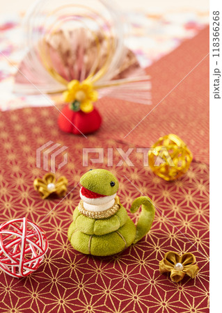 年賀素材 巳年 背景の屏風の枠を金色に変更