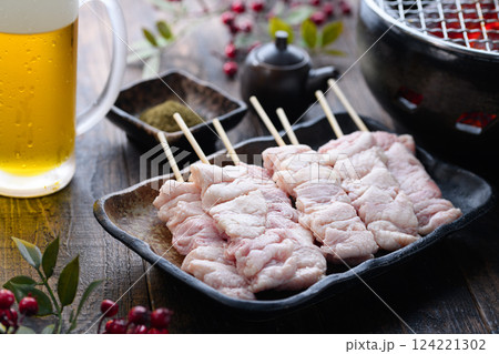 焼く前の焼き鳥 ( 鶏皮 皮串 )