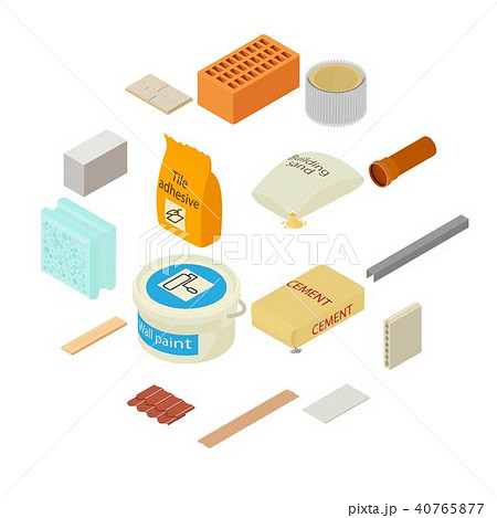 Building materials icons set, isometric style
