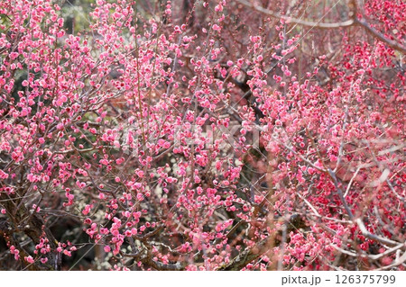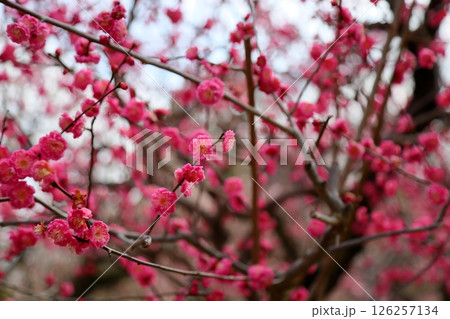鮮やか 梅の花 八重寒紅