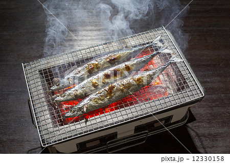 七輪で焼くイワシ 焼き魚と七輪 イメージ素材 節分イメージ