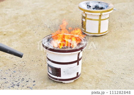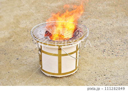 七輪と炭火 イメージ素材 火起こし アウトドア 炭焼き