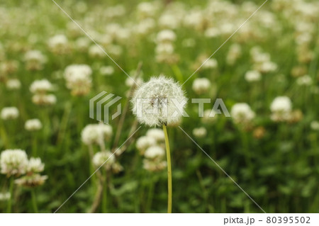 キャンプ場からの散歩道 道端で見つけたたんぽぽの綿毛