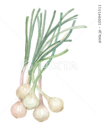 水彩で描いたノビル 野蒜