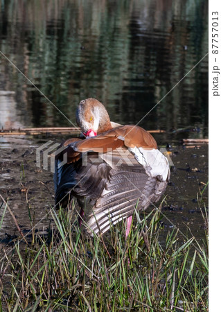 Beautiful Egyptian goose, duck, flew to the Winter Lake in Netanya