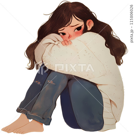 背を向け座り込んで落ち込んでいる女性のAI画像