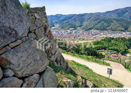 〈島根県〉月山富田城 三ノ丸跡の段築の石垣と町並み