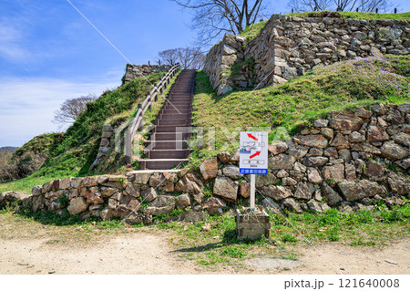 〈島根県〉月山富田城跡と桜 山中御殿跡の石垣