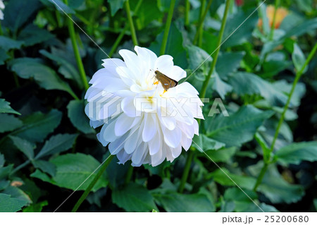 峨瓏親水公園の白いダリアと蝶