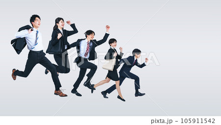 ジャンプする若いビジネスパーソンのグループ