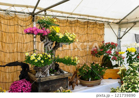 クローズアップ菊の花 菊花展示会 秋の風物詩「菊人形・菊まつり」菊池市ふるさと創生市民広場