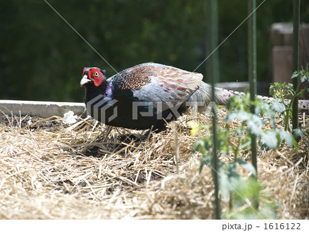 庭を歩くキジ
