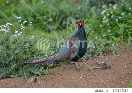 草原を歩くキジ
