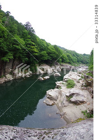 信州 木曽路の景勝 裏寝覚(うらねざめ) 超広角縦 寝覚の床の下流にある