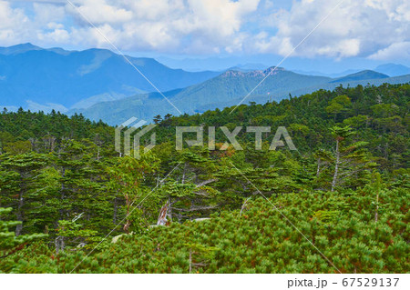 山梨(長野)の北奥千丈岳(きたおくせんじょうだけ)山頂から南西側(水晶峠,太刀岡山,中津森)方面