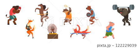 Funny Animal in Gym Do Sport Activity Vector Set