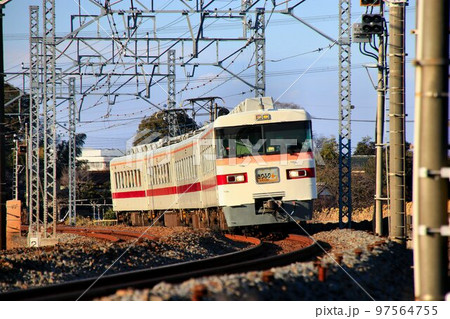 秋の夕暮れの東武日光線を走る350型特急きりふり号