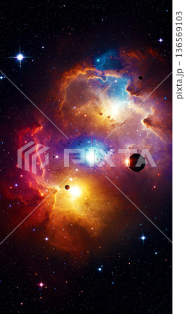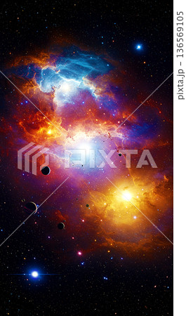 宇宙空間 カラフルな星雲イメージ素材