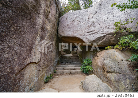 弥山山頂付近の巨石群くぐり岩、宮島、広島県