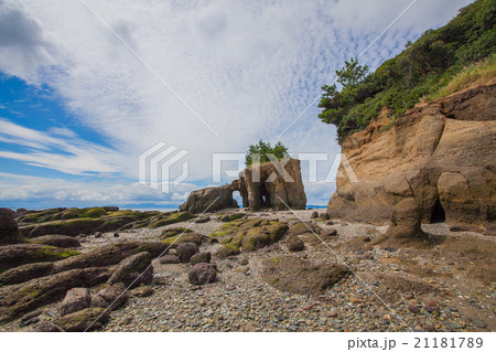 北海道乙部町の奇岩くぐり岩の風景を撮影