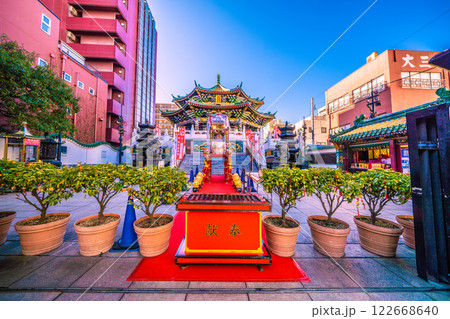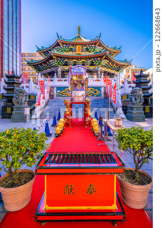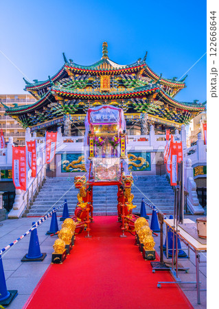 日本の横浜都市景観春節の神輿くぐり。横浜中華街・横浜媽祖廟などを望む。新時代へ=令和7年2月6日