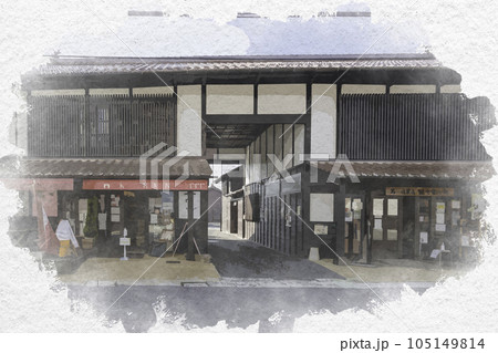 水彩画風 西条酒蔵通り くぐり門 広島県東広島市
