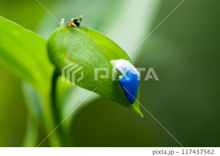 6月の梅雨の時期に咲いた青い花のツユクサ